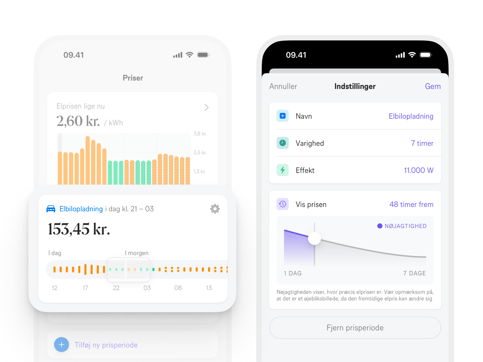 Prisperioderne ændrer sig selvfølgelig i takt med elpriserne, så du altid har et opdateret overblik over, hvornår det er bedst at bruge strømmen.
