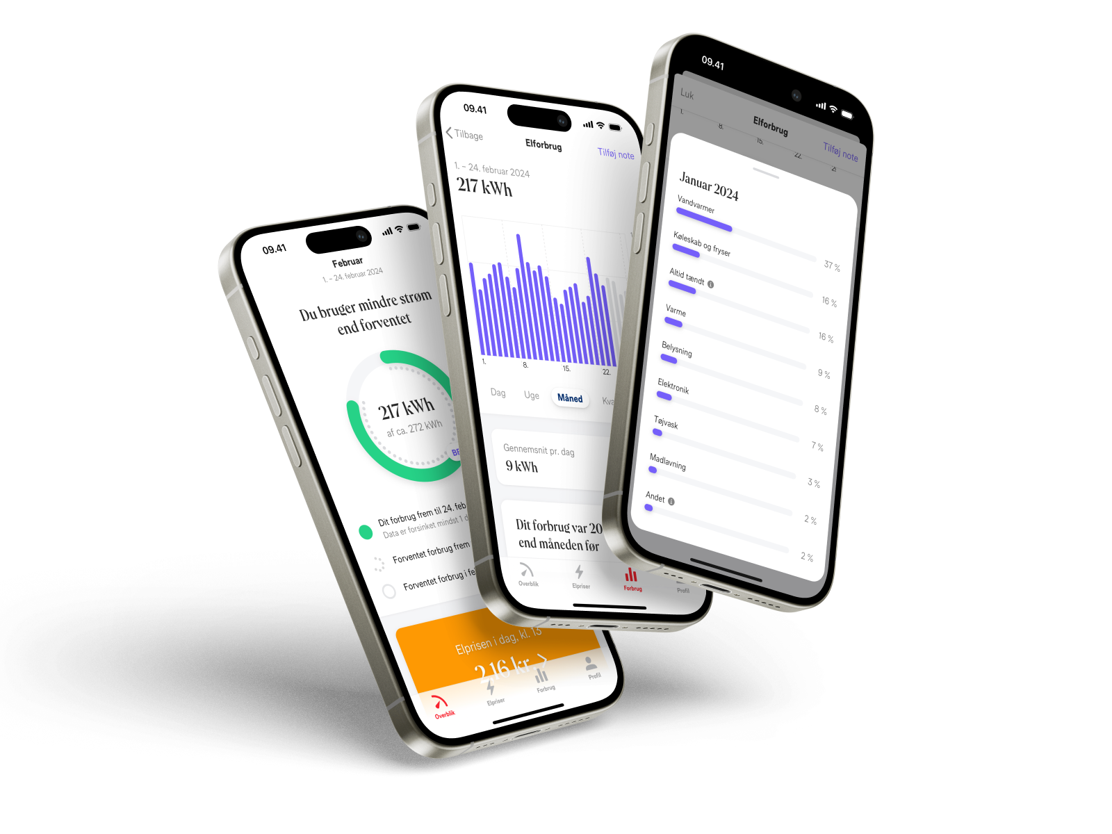 Hvis du er elkunde hos Norlys, kan du logge ind i appen og følge dit forbrug. Appen bruger AI til at estimere dit forventet elforbrug og anslår, hvordan det fordeler sig på husstandens apparater. Det kan fx være inden for madlavning, vaskemaskine og belysning. Derudover sammenligner appen dig med andre husstande, der minder om din.