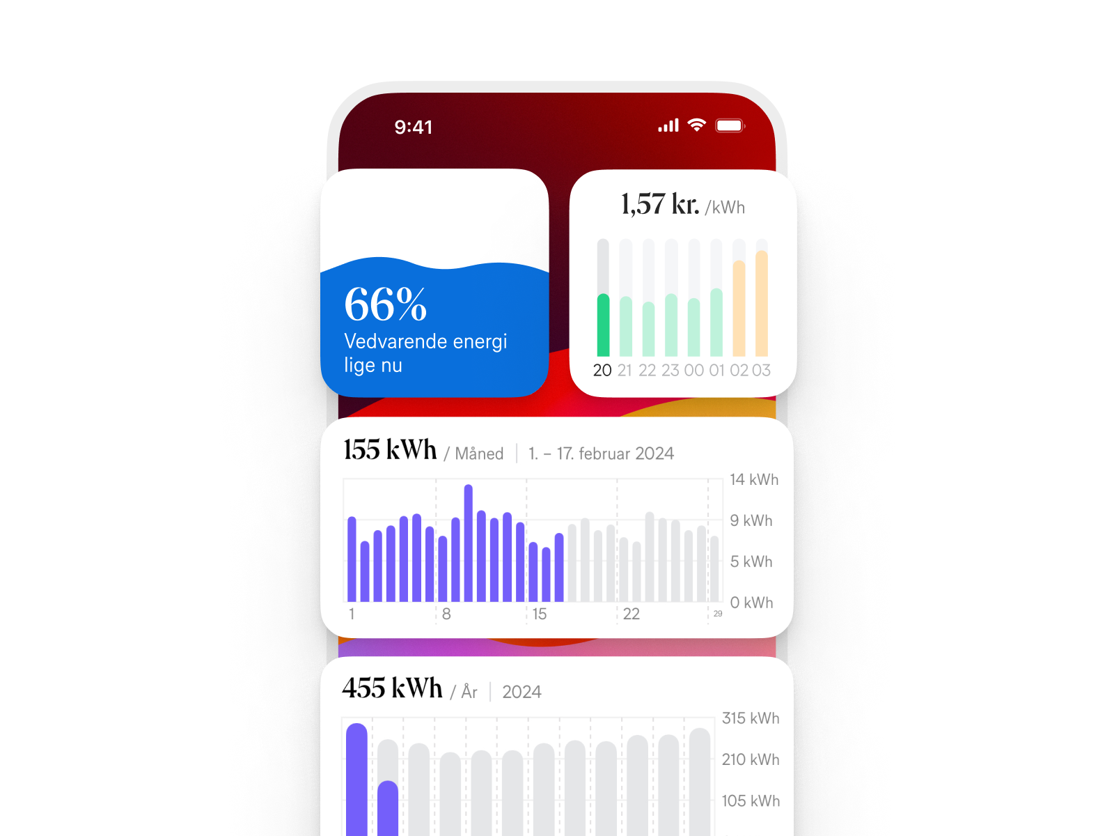 Med vores widgets kan du nemt og hurtigt se dagens elpris time for time direkte på din hjemmeskærm, selvom appen er lukket. Du kan også vælge blot at se prisen otte timer frem i tiden.