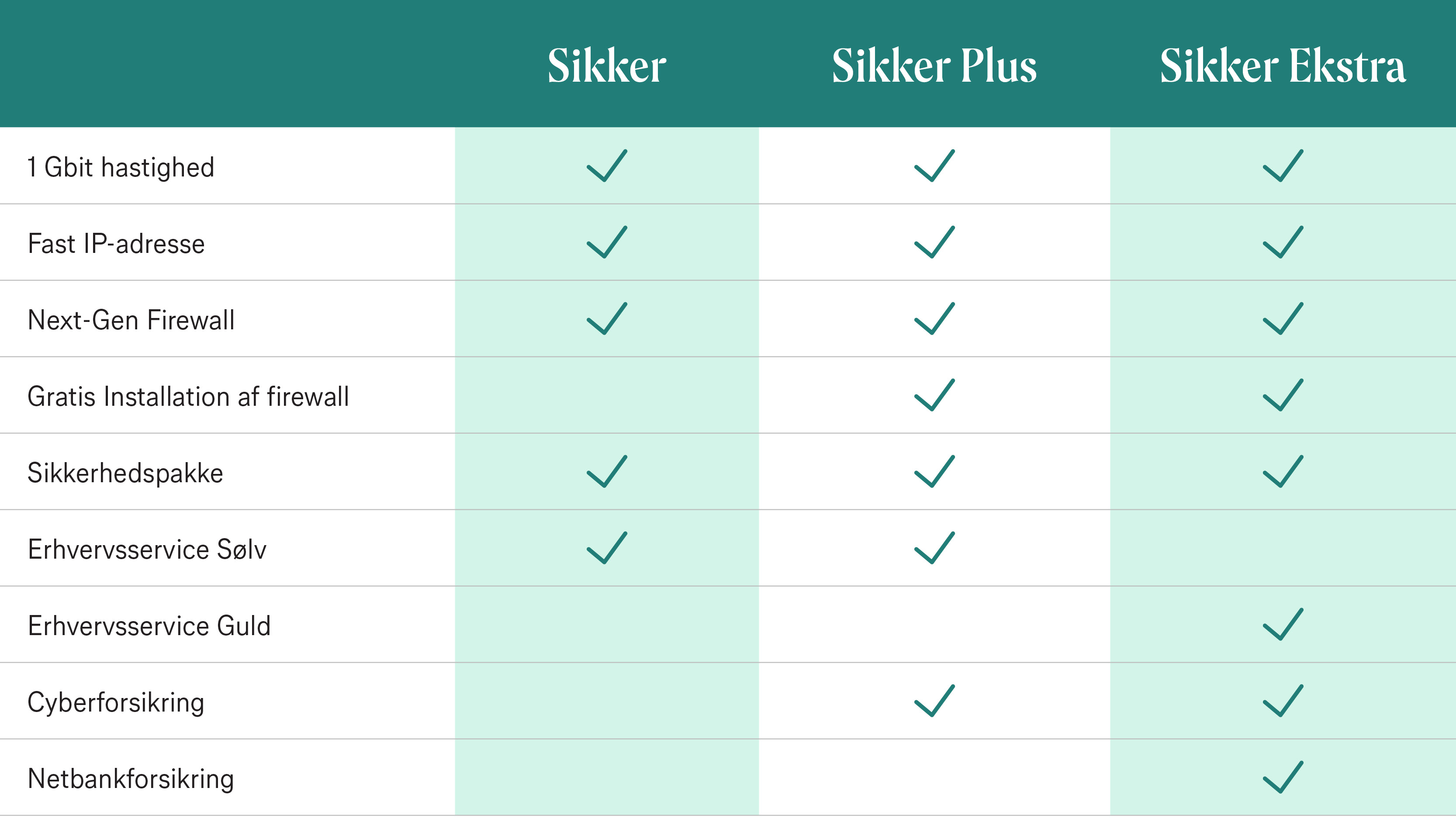 Sammenlign Erhvervsinternet Sikker-pakkerne