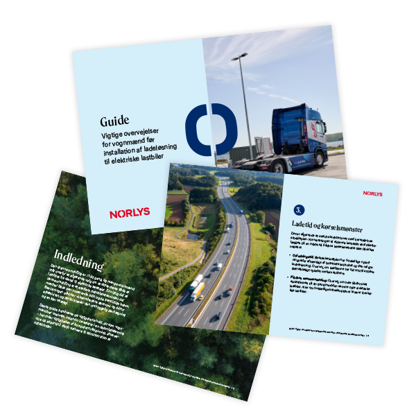 Overvejer du at skifte til ellastbil? Og har du behov for depotladning? Med en skræddersyet ladeløsning fra Norlys er du i gode hænder. Vi hjælper dig med at identificere dit ladebehov og dit ladevindue, hjælper med amperebalanceringen og med at finde den optimale placering af din nye ladestander. Med andre ord er vi med hele vejen – lige fra planlægning og rådgivning til installation, service og support.
