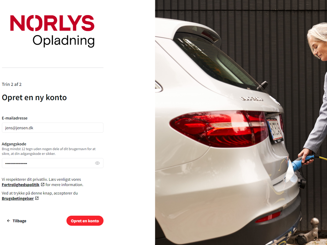 Guide til oprettelse af konto på Norlys Opladningsplatform