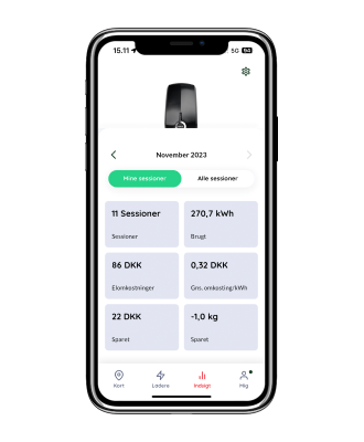 Du kan følge dit forbrug og se dine betalinger direkte i appen. Her får du overblik over alle dine ladesessioner og kan se, hvor mange kWh du har brugt og til hvilken pris.